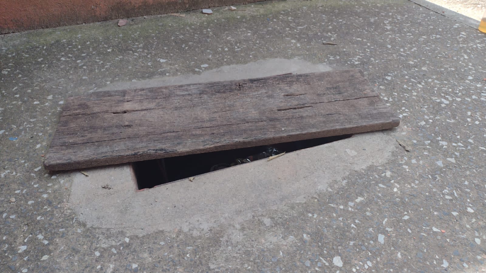 Indica a abertura da tubulação abaixo da linha férrea no Jardim Ponta Porã, em Maylasky