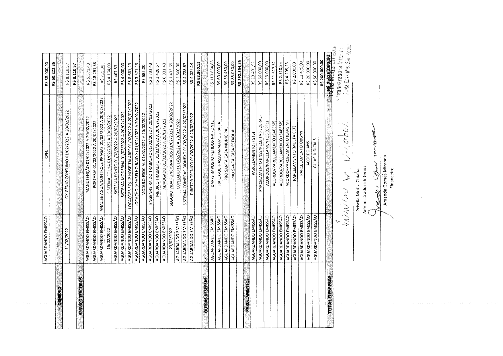 | Documentos Final Digitalizado Nº 1 ao Ofício Vereador Nº 783/2022 | 15/03/2022 | Documentos Final Digitalizado ao Ofício Vereador Nº 783/2022 - Solicita a isenção da cobrança da Taxa de Esgoto da Irmandade Santa Casa São Roque |