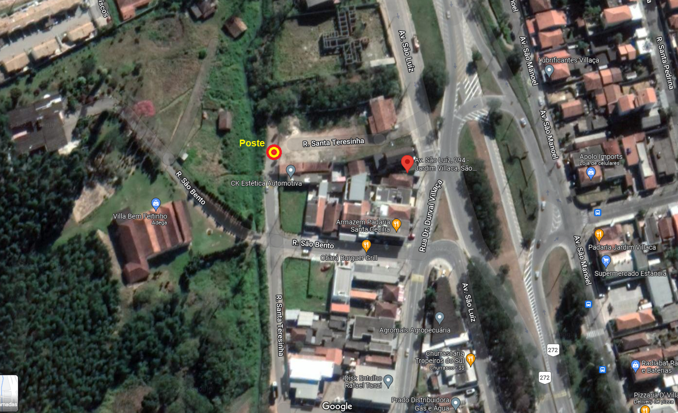 Solicita a colocação de poste para iluminação pública na Rua Santa Terezinha, na antiga entrada do fundo do "Bola Construções"