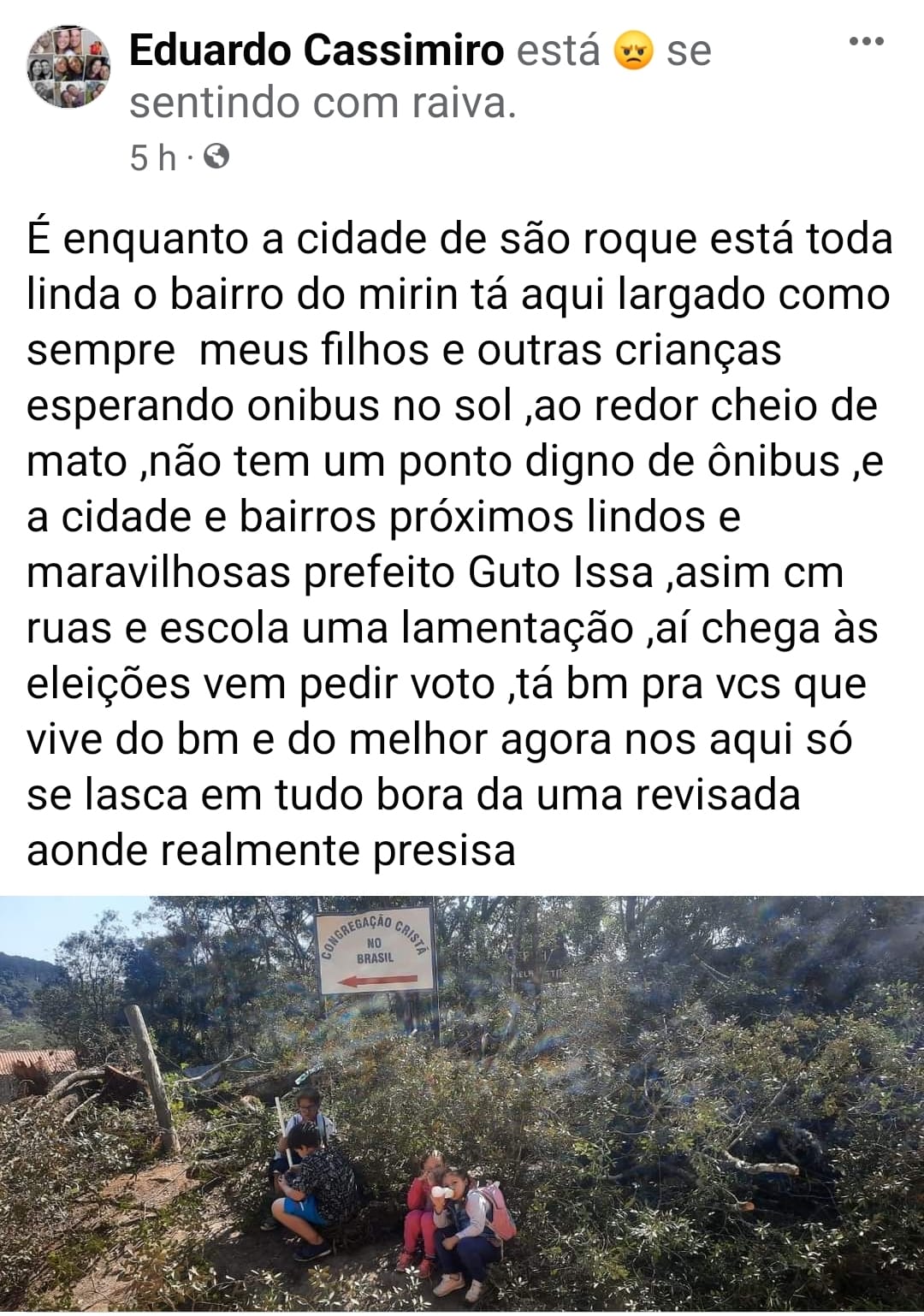 Assunto: Solicita ao Departamento de Obras a colocação de um ponto de ônibus onde as crianças esperam o transporte escolar no bairro do Mirim, mais precisamente na entrada da Estrada Bela Vista.