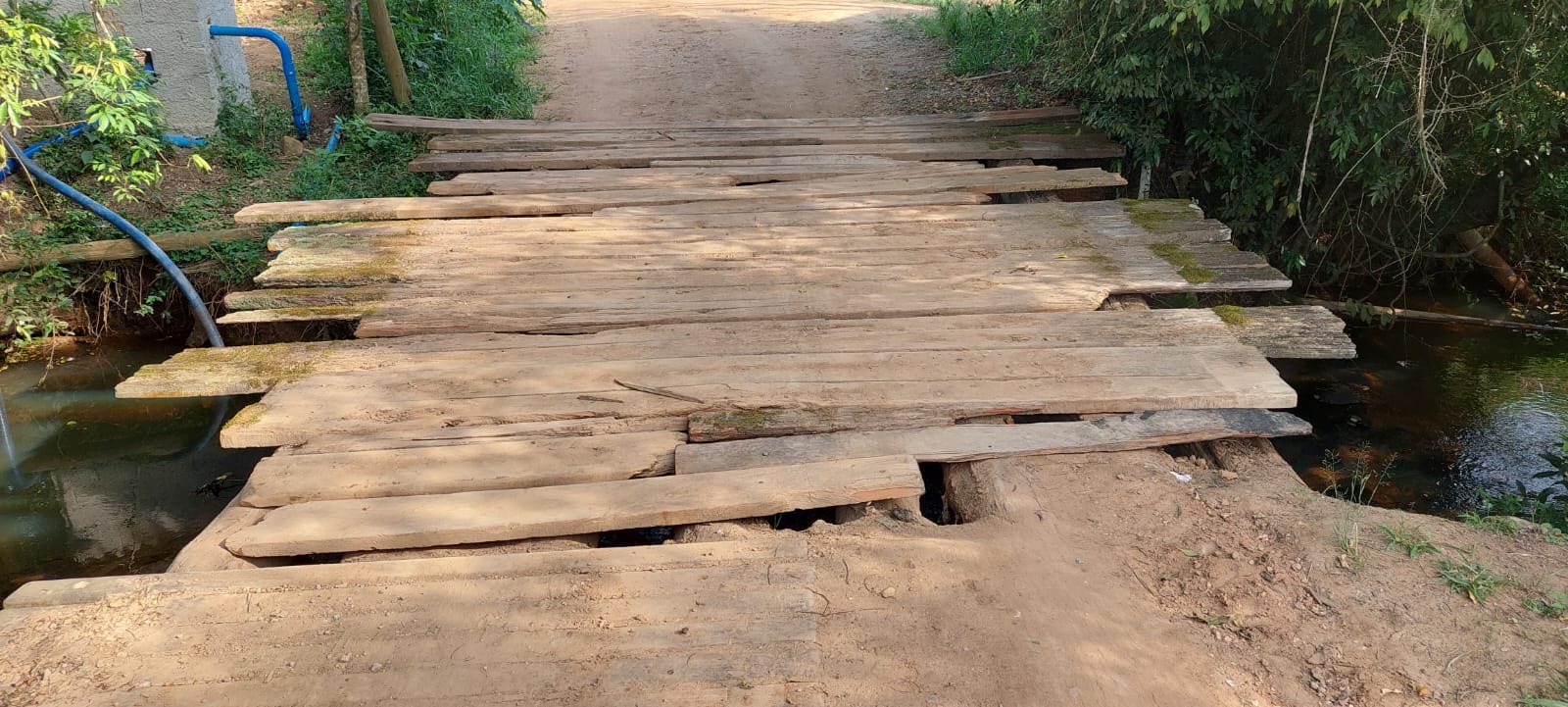Solicita informações com relação a ponte de madeira existente na Estrada do Rincão Azul, localizada no Distrito de Canguera