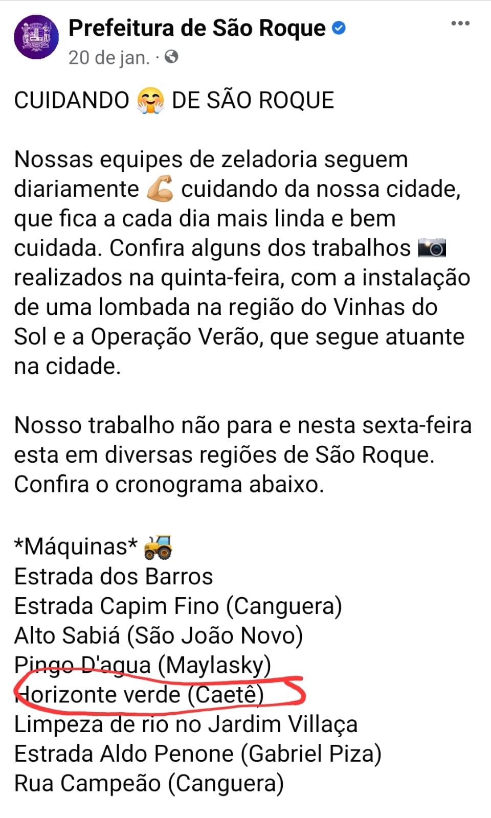 Assunto: Solicita ao Departamento de Obras informações sobre o local onde foi exatamente realizado o serviço com máquinas no bairro Horizonte Verde, no dia 20/01/2023.